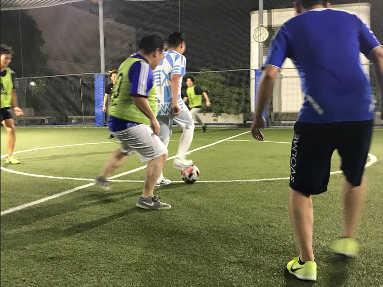 会社の若手社員と真夏の夜のフットサル♫ みんなキレ良く、めちゃうまいし輝いてたな~♫ 自分、年がいもなく、はりきり過ぎて足首捻挫する。 全治3週間(w)