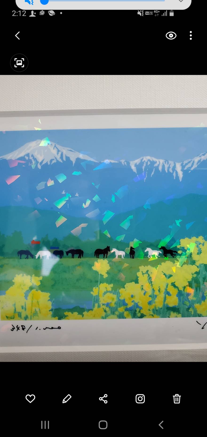 会社の机の上に置いている。 馬が9頭遊牧しているほのぼの絵画 <うまくいく♫>