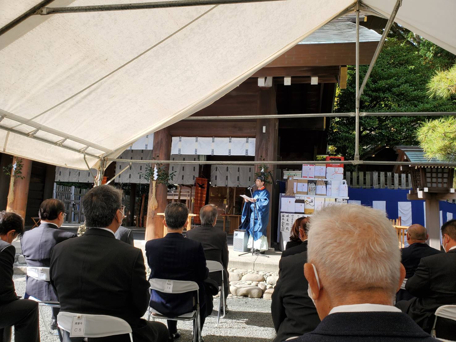 新嘗祭 2021.11.23 正直何の行事か意味わからず出席したが 平たく言うと秋の新米収穫祭的な祭典。 宮司さんのあいさつで今日は感謝を込めていっぱいお米とお酒を 食して下さいと言われたんでいっぱい飲まなきゃ♫