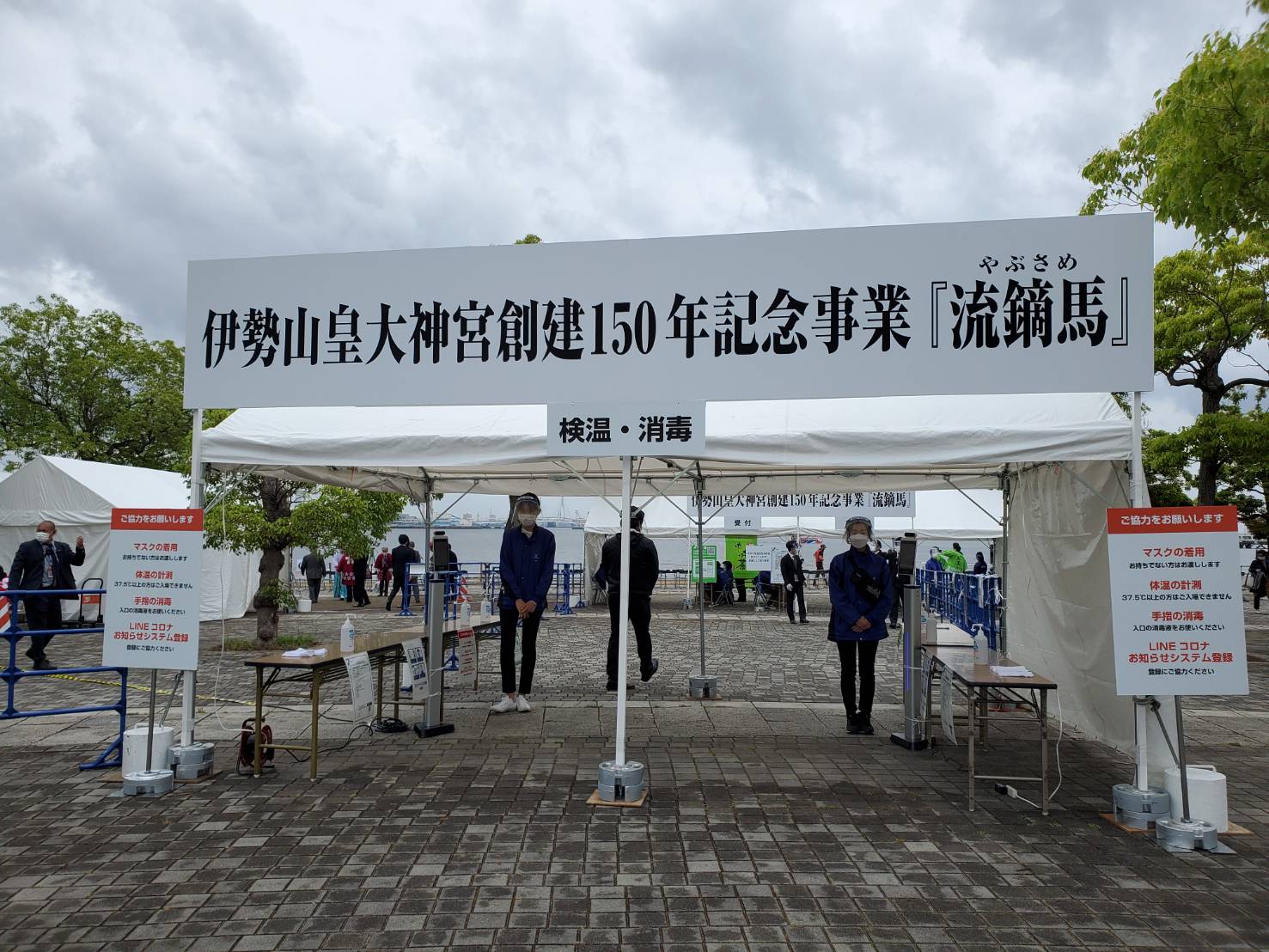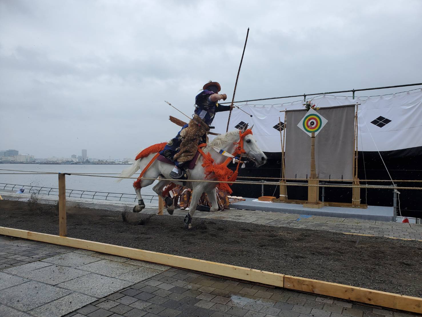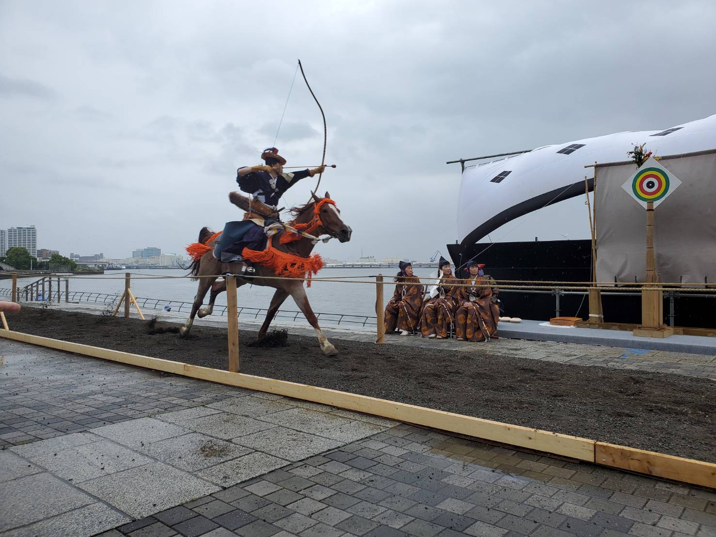 流鏑馬 2021.05.17 伊勢山皇大神宮創建150周年記念事業 昨日参加してきました~♬ TVでは何回か観た事あったけど生は初だった まぁ生はやっぱり臨場感あるね~♬ 後半雨強くて馬もへばってた(笑)