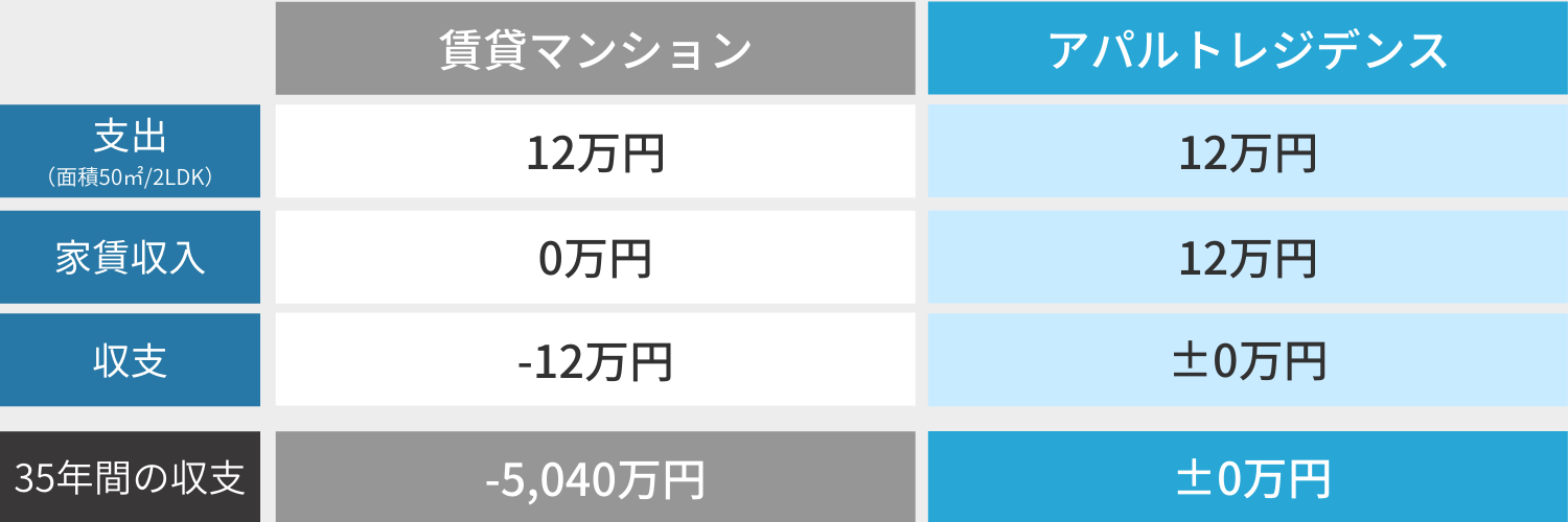 ・賃貸マンションとアパルトレジデンスを購⼊した場合の費⽤の⽐較