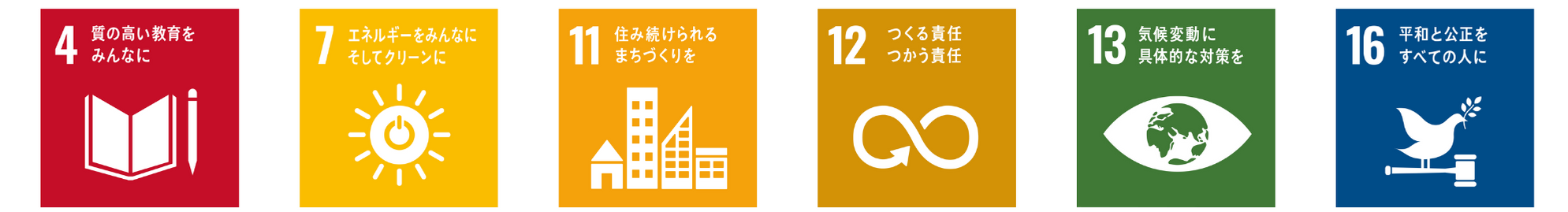 SDGsの17の⽬標のうち、6つの⽬標に紐づいています。