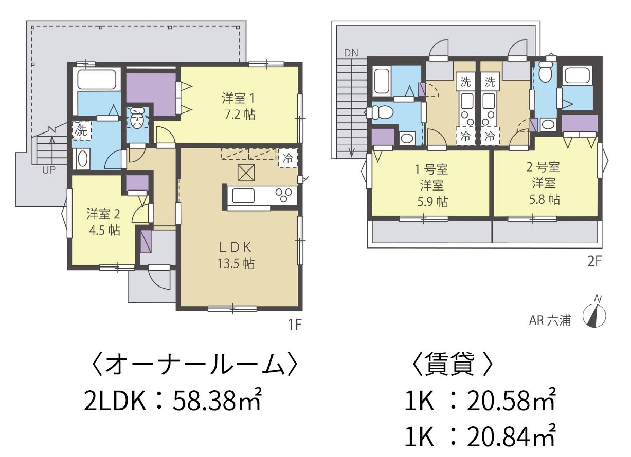 総⼾数 :3⼾(オーナールーム1⼾ + 賃貸2⼾)