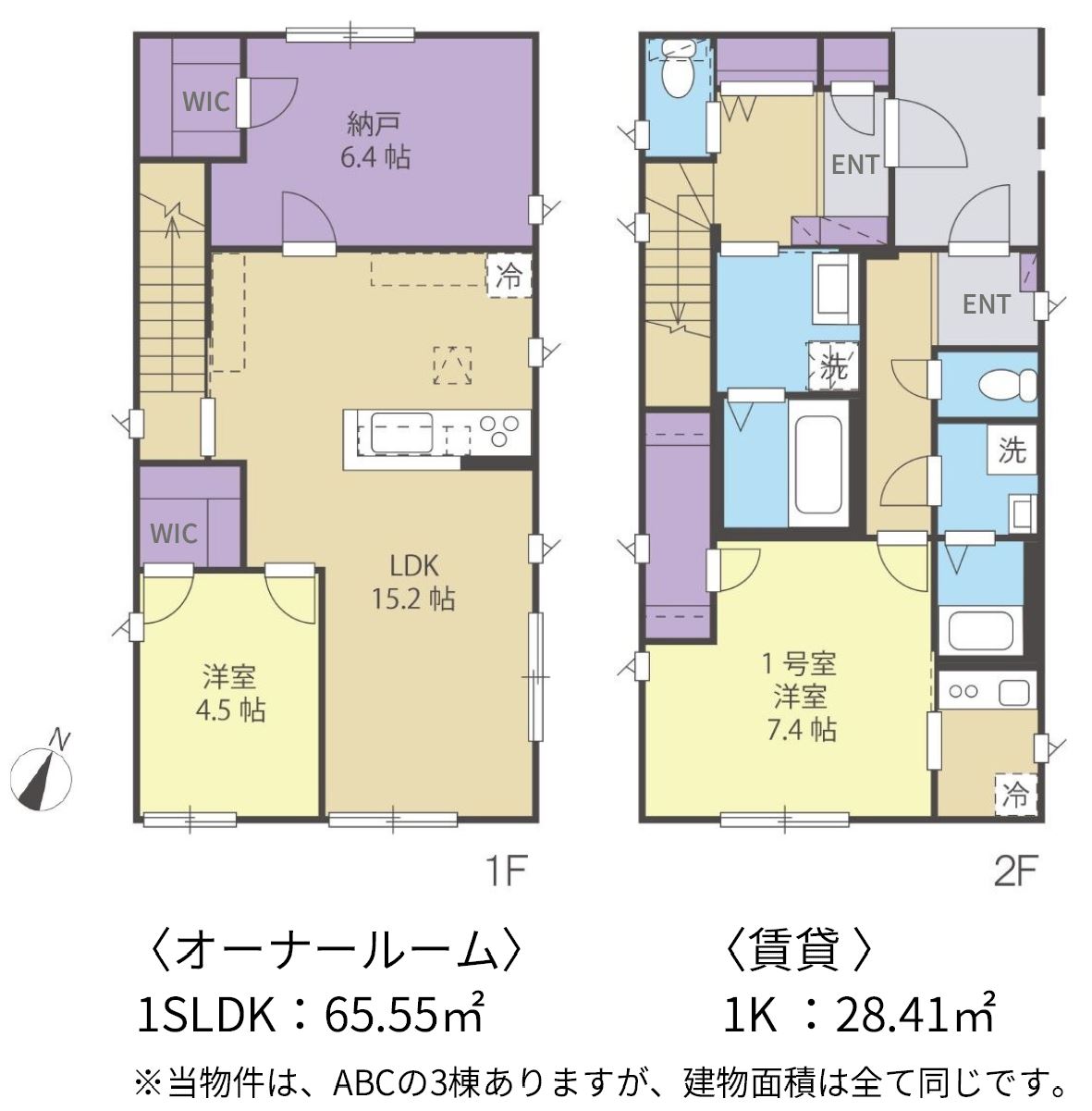 総⼾数 :2⼾(オーナールーム1⼾ + 賃貸1⼾)