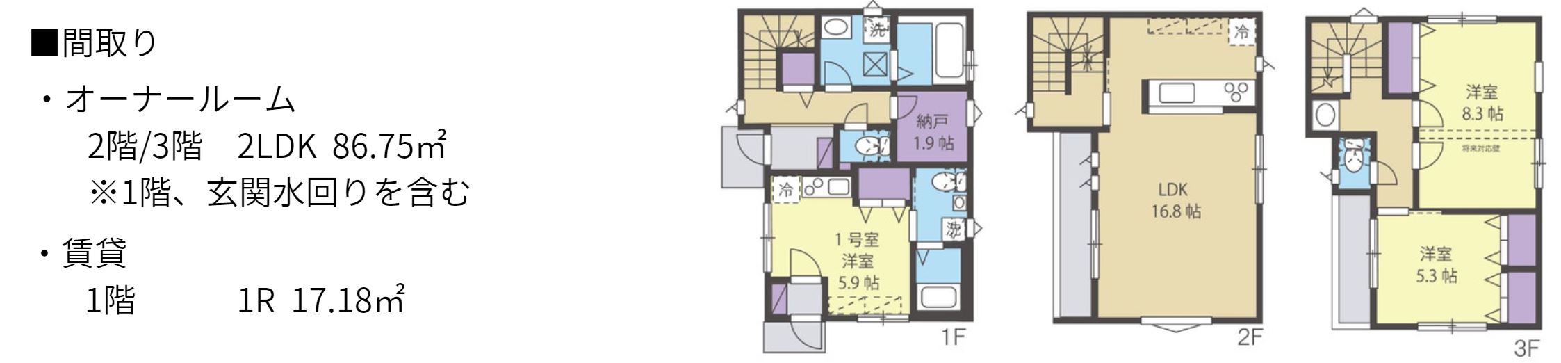 総⼾数 :2⼾(オーナールーム1⼾+賃貸1⼾)